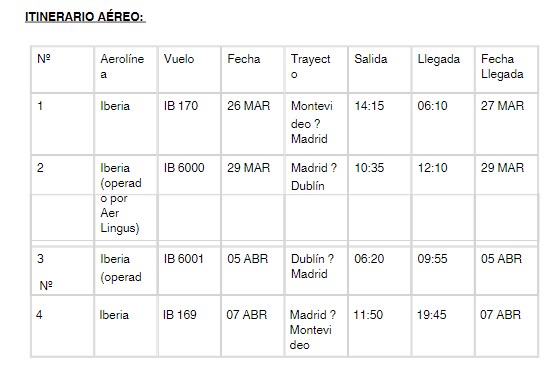 DÍA 12 - 06/04: MADRID Alojamiento. Día libre en Madrid DÍA 13 - 07/04: MADRID - MONTEVIDEO Presentación en aeropuerto para salir en vuelo con destino a Montevideo. Llegada a Montevideo y fin de nuestros servicios.