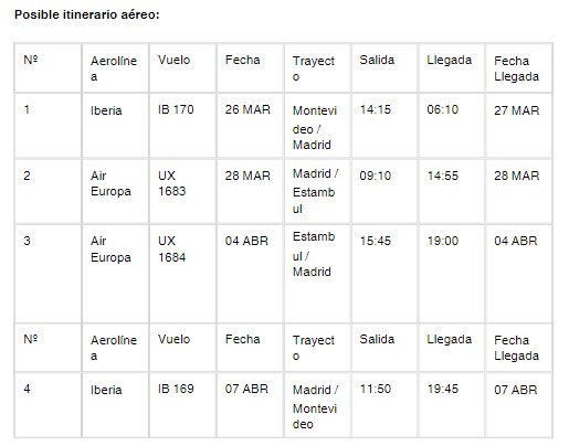 Vuelos: Montevideo/Madrid/Estambul/Madrid/Montevideo